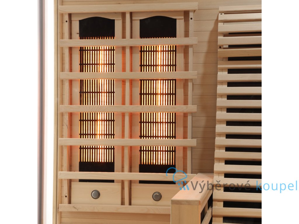 Carbon 3 je vybavena 7 karbon-magnesiovými zářiči doplněnými o 3 kvalitní fullspektrální zářiče (2 nastavitelné zádové pro maximální komfort). Tyto prvky společně zajišťují rovnoměrné rozložení tepla, které proniká hluboko do svalů, uvolňuje napětí, podporuje regeneraci a přináší skutečnou úlevu po náročném dni i po sportovním výkonu.