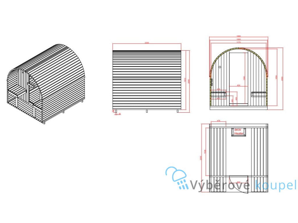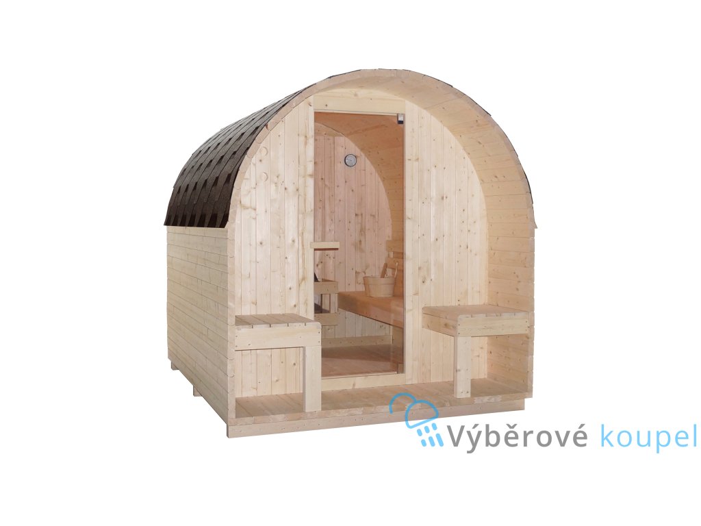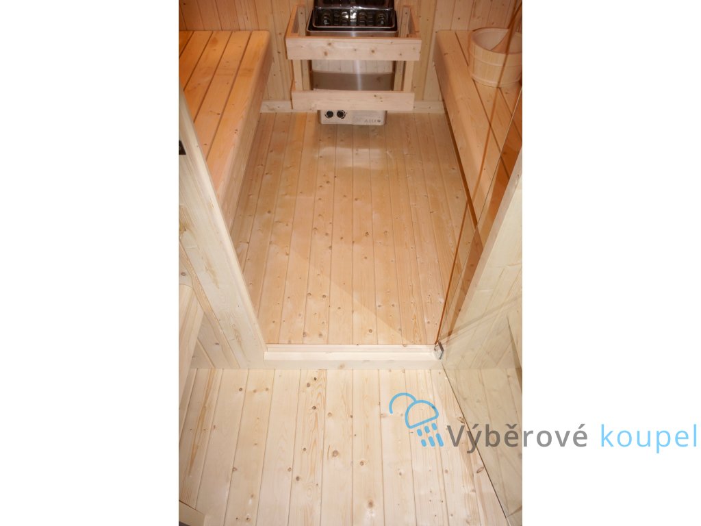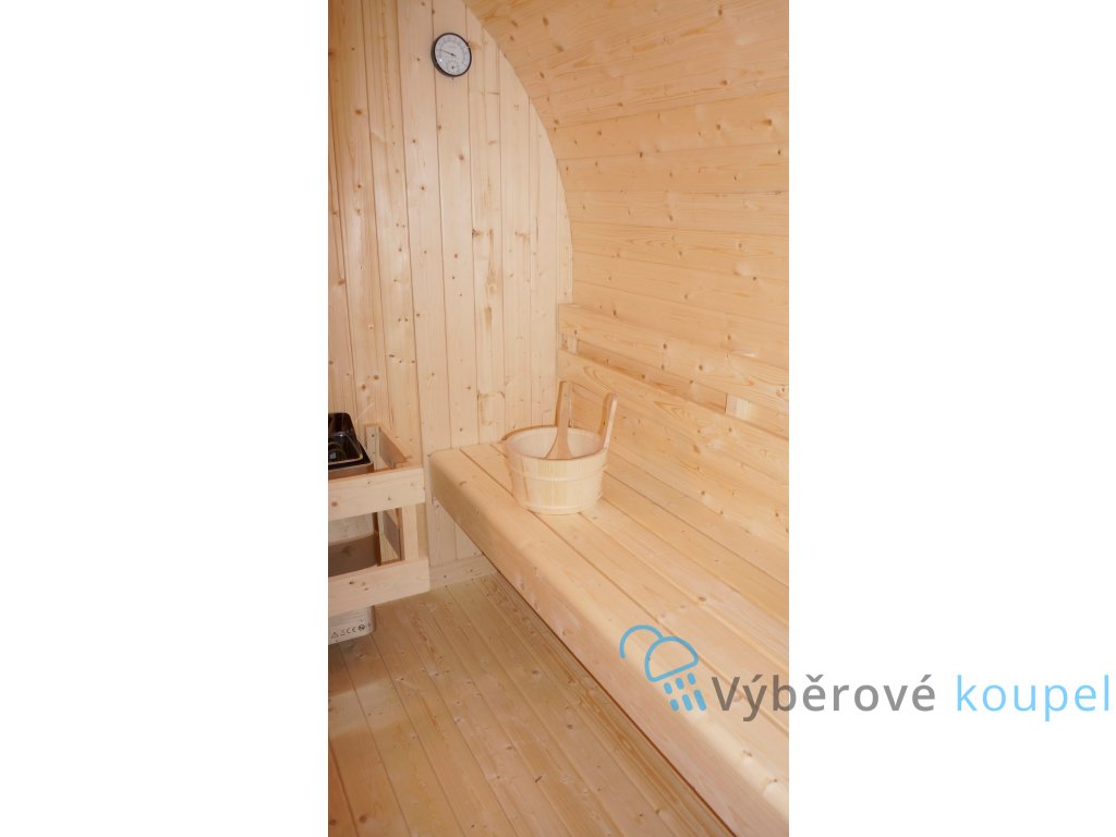 - Výbava: kamna, saunové kameny, vědro, naběračka, přesýpací hodiny, teploměr