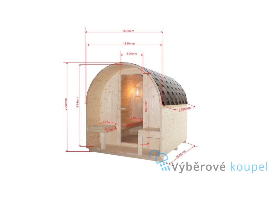 - Rozměry exteriéru: 189 × 220 × 200 cm