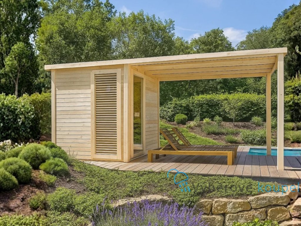 Na vnější části sauny doporučujeme použít olejový nebo hybridní ochranný nátěr s UV filtrem, který odolá vlhkosti, dešti i přímému slunci.